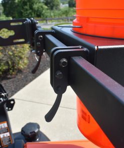 Two integrated cam lever latches on the bucket holder securely lock into position on the ROPS bar (sold separately). The bucket can be removed and returned without removing the bucket holder.